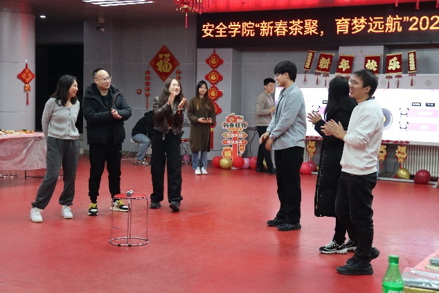海工、安全两个系、新入职教师、学院办公室和学生办公室精心准备了歌曲、舞蹈、小品、相声、古筝演奏等丰富多彩的节目,并组织大家进行小游戏和抽奖环节,为茶话会增添了欢声笑语。老师们多才多艺的表演引得全场喝彩,掌声雷动。