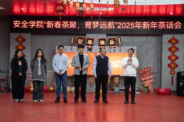 茶话会上,学院党委书记孙为,院长杨进,党委副书记赵凯,副院长郑文培、张玉等领导班子成员发表了热情洋溢的新年贺词,代表学院向全院教职工和长期关心支持学院发展的各级领导表示衷心感谢,代表学院给全院教职工送上新年的祝福,对新教师加入安全学院大家庭表示欢迎。