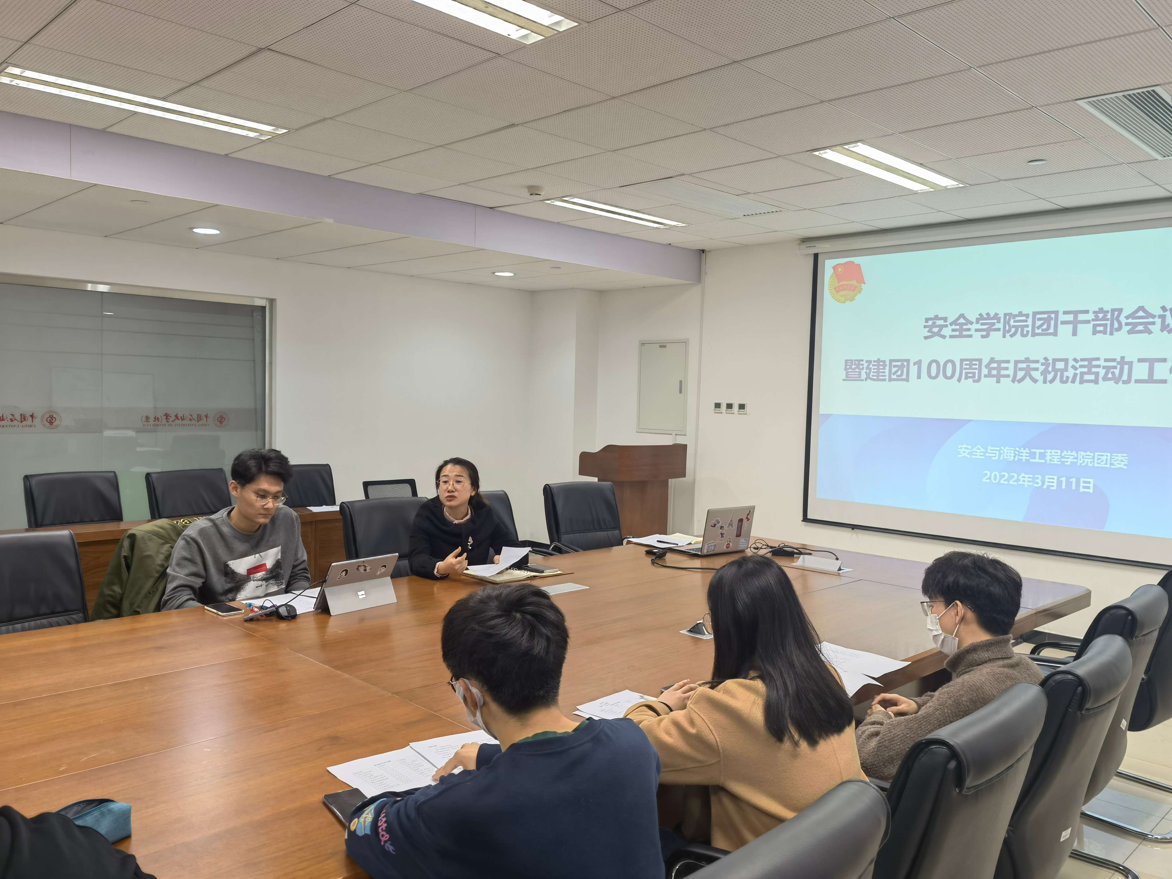 2022年是党的二十大召开之年,是共青团建团100周年。3月11日,安全学院团委在主楼A520会议室召开建团百年系列活动暨2022年工作布置会。安全学院团委书记方百会、辅导员于晓鹏、赵思源及所有社团骨干出席会议。