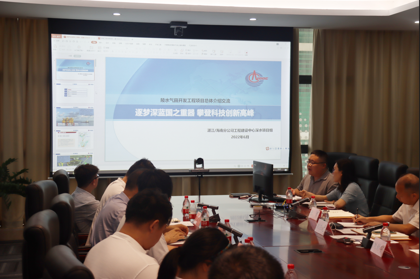 首先,工程建设中心第三党支部播放专题宣传片,介绍了我国首个1500米深水自营大气田陵水17-2“深海一号”、陵水25-1深水气田的基本情况,让各位同学对“深海一号”有了更深入的了解。