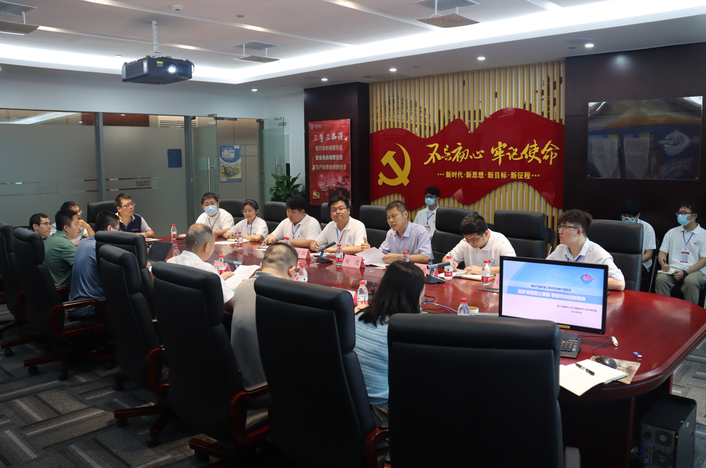 6月22日,中国石油大学(北京)深海工程创新团队党支部与中海油工程建设中心第三党支部开展共建交流活动。中海油工程建设中心副总经理刘孔忠,深水项目组总工程师刘新宇,中石大安全与海洋工程学院副院长杨进,中国石油大学(北京)海南研究院副院长殷启帅及深海工程团队创新党支部学生党员参加共建交流,会议由工程建设中心陵水25-1项目总工程师张勇进行主持。