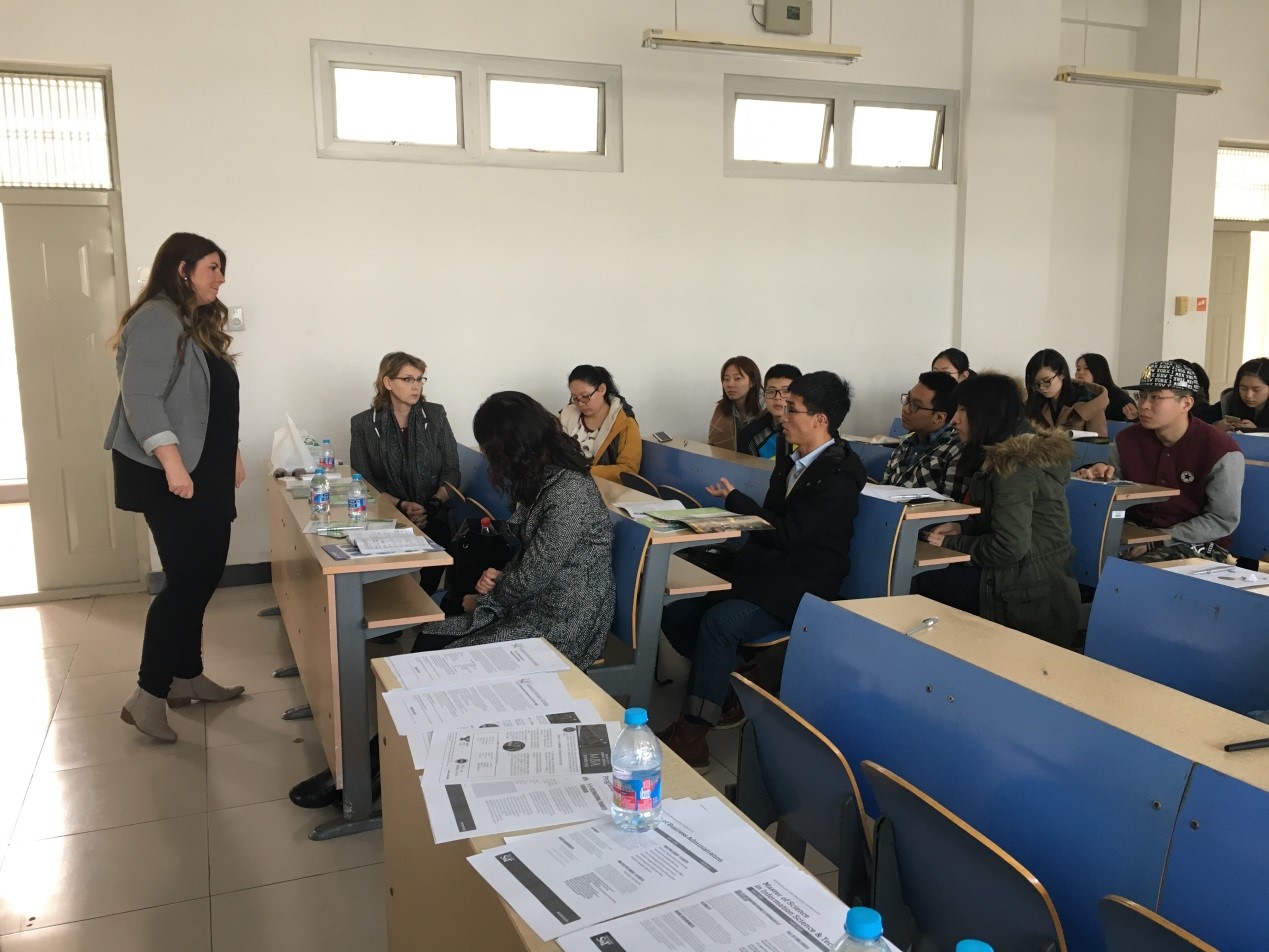 美国密苏里科技大学国际合作交流宣讲会活动于3月21日上午10点在南区三教203教室召开。本次宣讲活动邀请到美国密苏里科技大学负责国际交流事务的老师 Jodi Hasekamp 和 Roberta Morgan,工商管理学院副院长沈庆宁,以及教务处董翠宇老师共同参会,也有很多本科生和MBA学生参与进来。宣讲过程中,学生认真听讲、积极提问,现场气氛活跃。