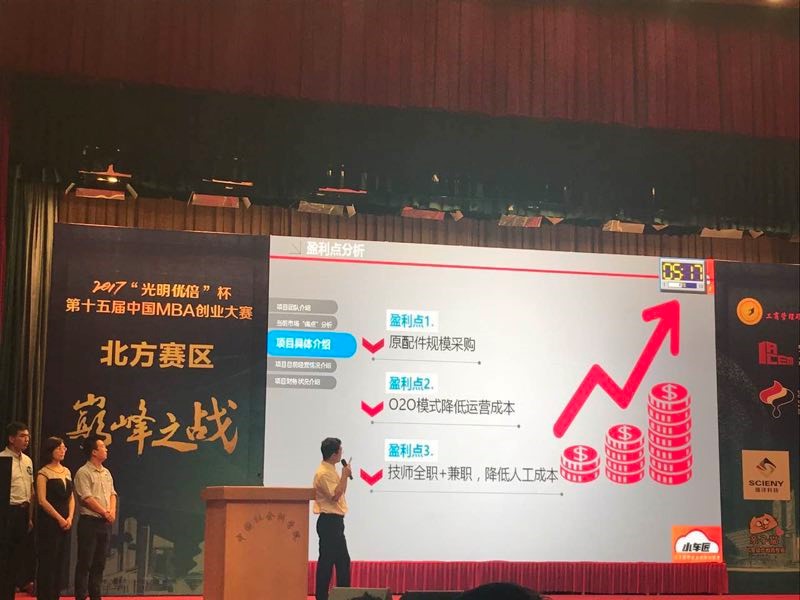 中国MBA创业大赛已经成功举办十四届,已成为具有全国影响力、代表全国MBA创业实力的经典赛事。在此次第十五届比赛中,中国石油大学(北京)MBA李筱君、陈玲、张庆旺、陈伟等组建了“小车匠技师联盟项目”团队,在领队教师、石大MBA中心执行副主任金镭老师指导下参赛。经过前期的紧张准备、初赛,该团队在69支队伍中晋级成功,杀入北方赛区决赛。