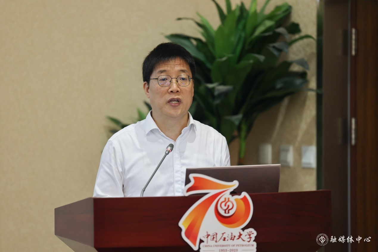 能源金融业界杰出校友褚玦海致辞。他表示,中石大的能源金融学科应注重油气传统能源及新能源衍生品的研究,研究如何在能源金融市场发展的基础上,研究解决国家能源供应安全问题。