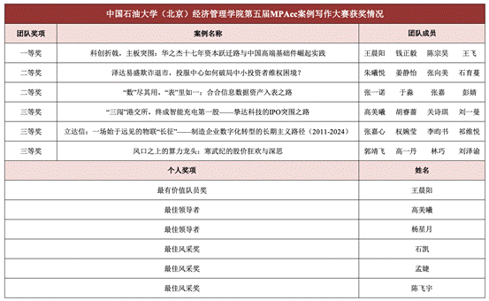 本次大赛充分展现了中国石油大学(北京)会计专硕学生扎实的专业功底与高效的团队协作水平,在锤炼学生案例开发与分析能力的同时,进一步加深了对行业前沿热点的认知与把握,也为我校会计专硕教育的提质发展积累了有益实践经验。未来,MPAcc教育中心将持续聚焦人才培养质量,着力打造兼具国际视野与创新思维的复合型会计人才,为我国会计行业高质量发展持续赋能。