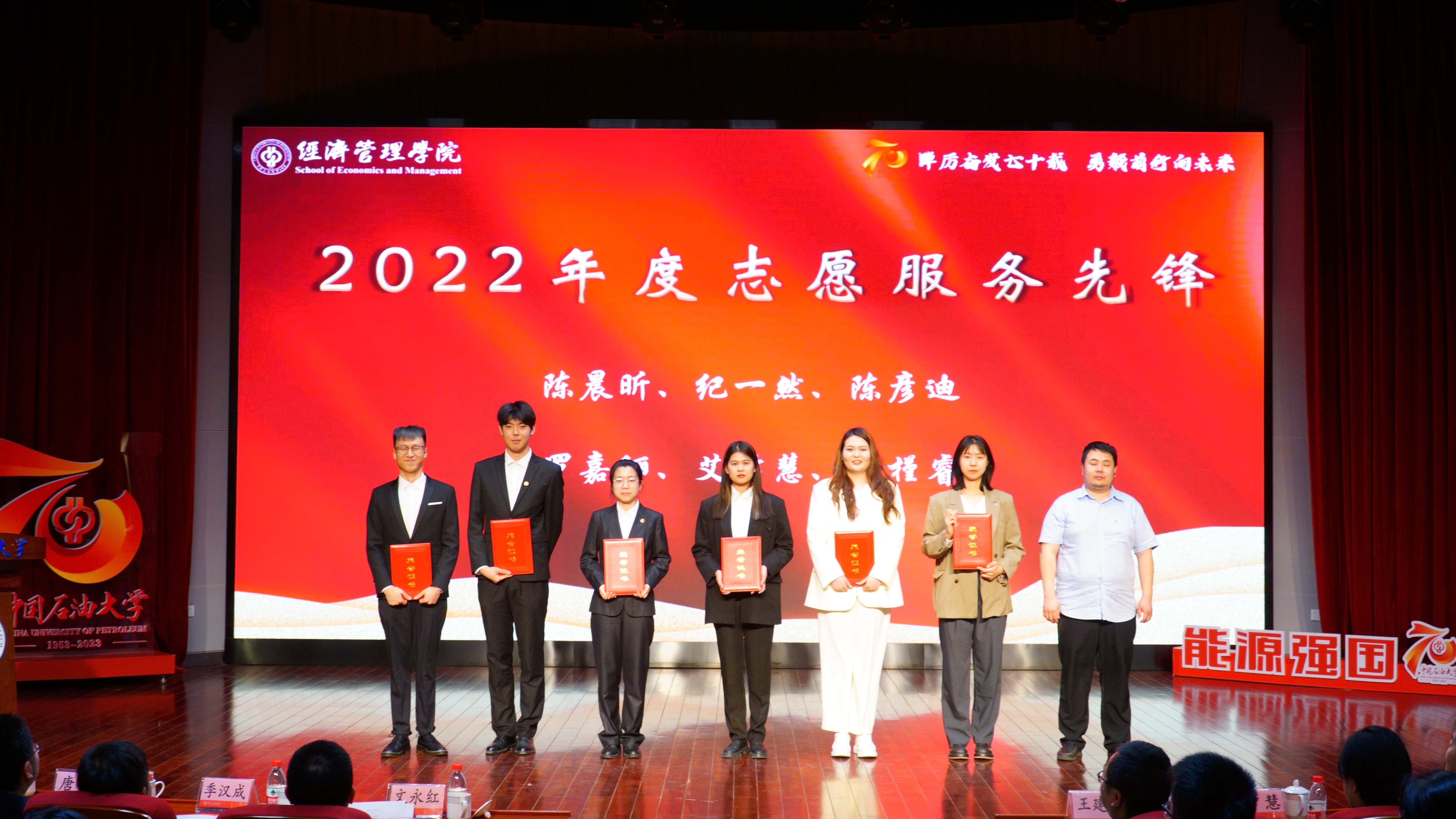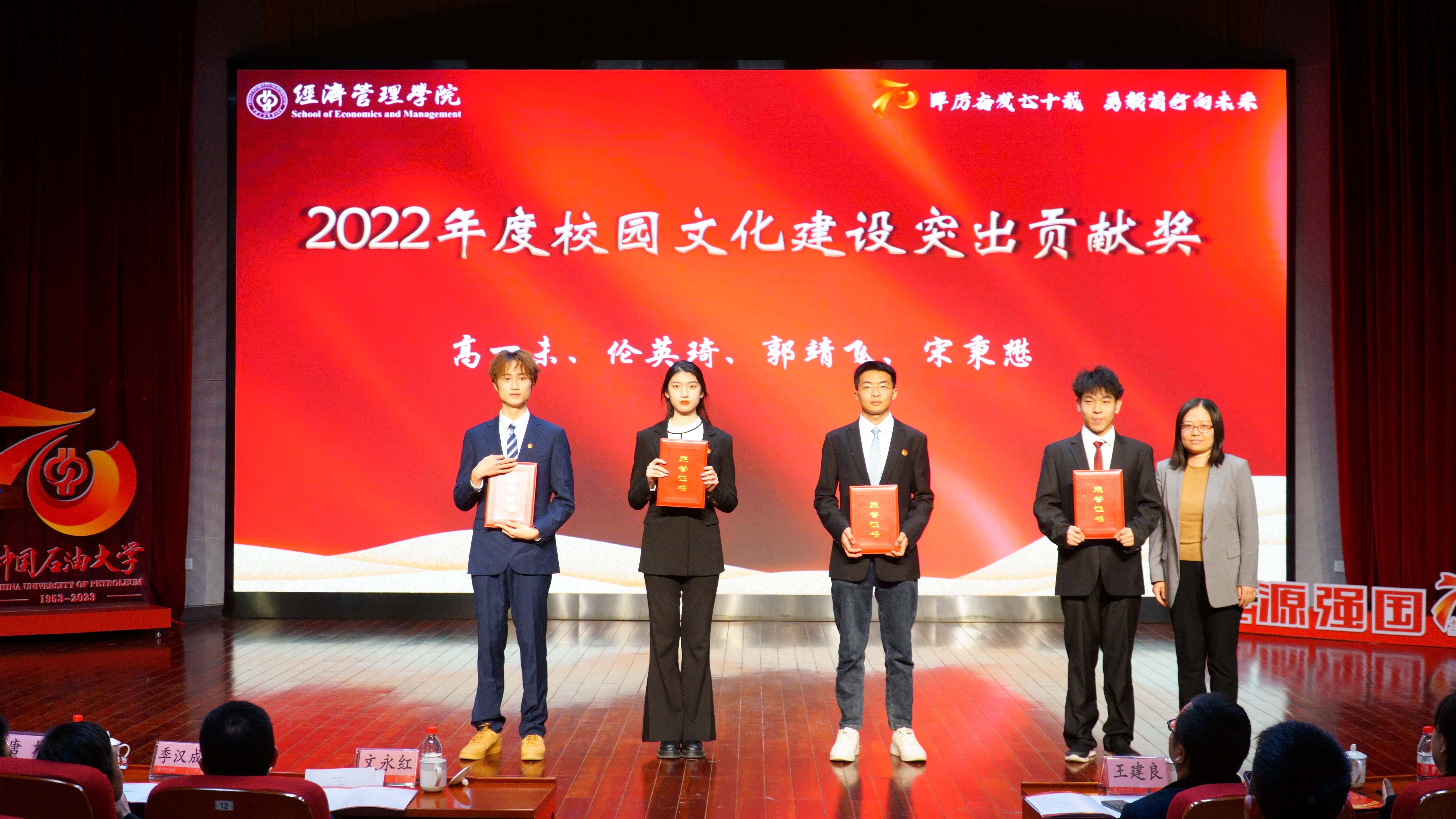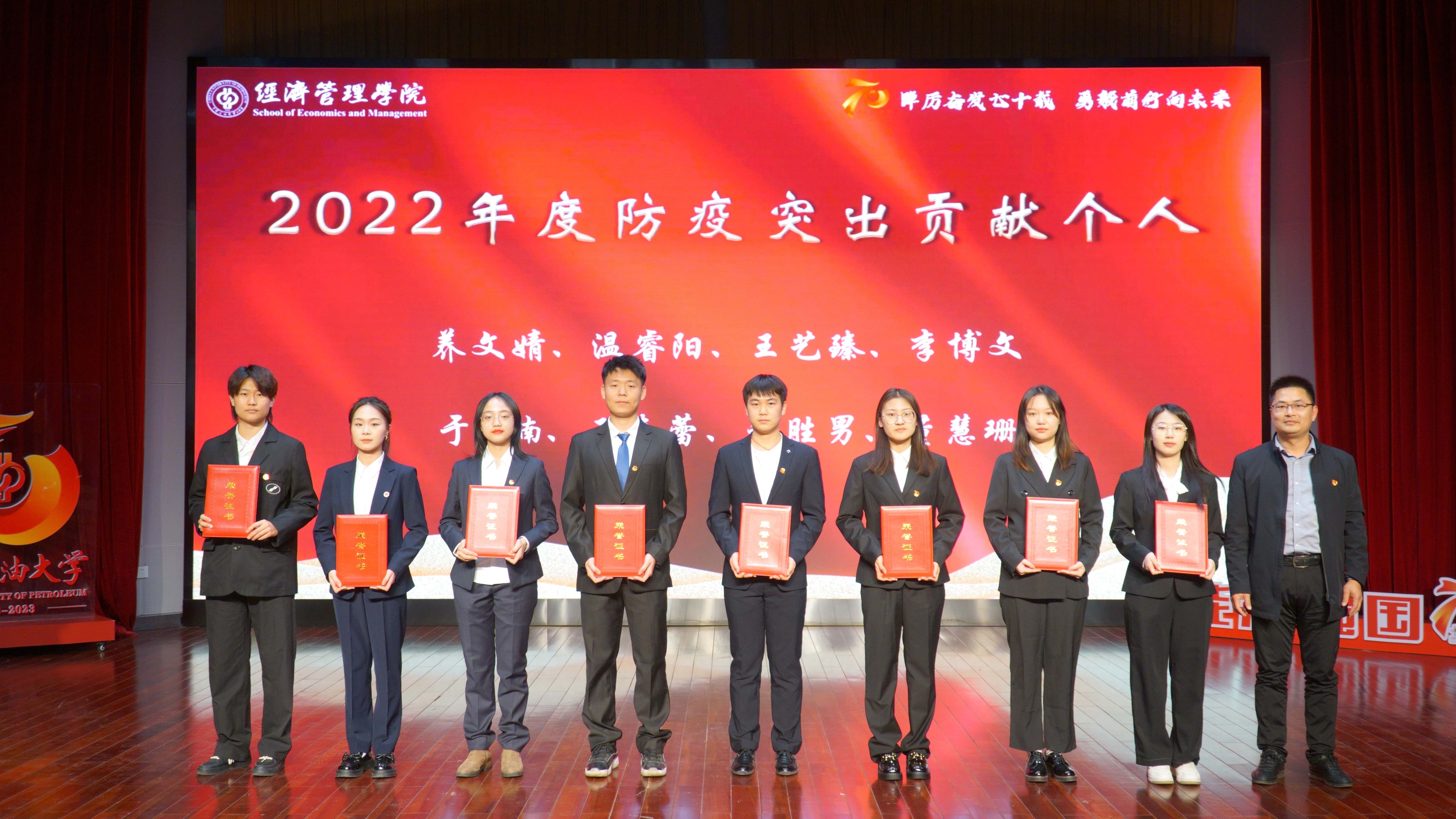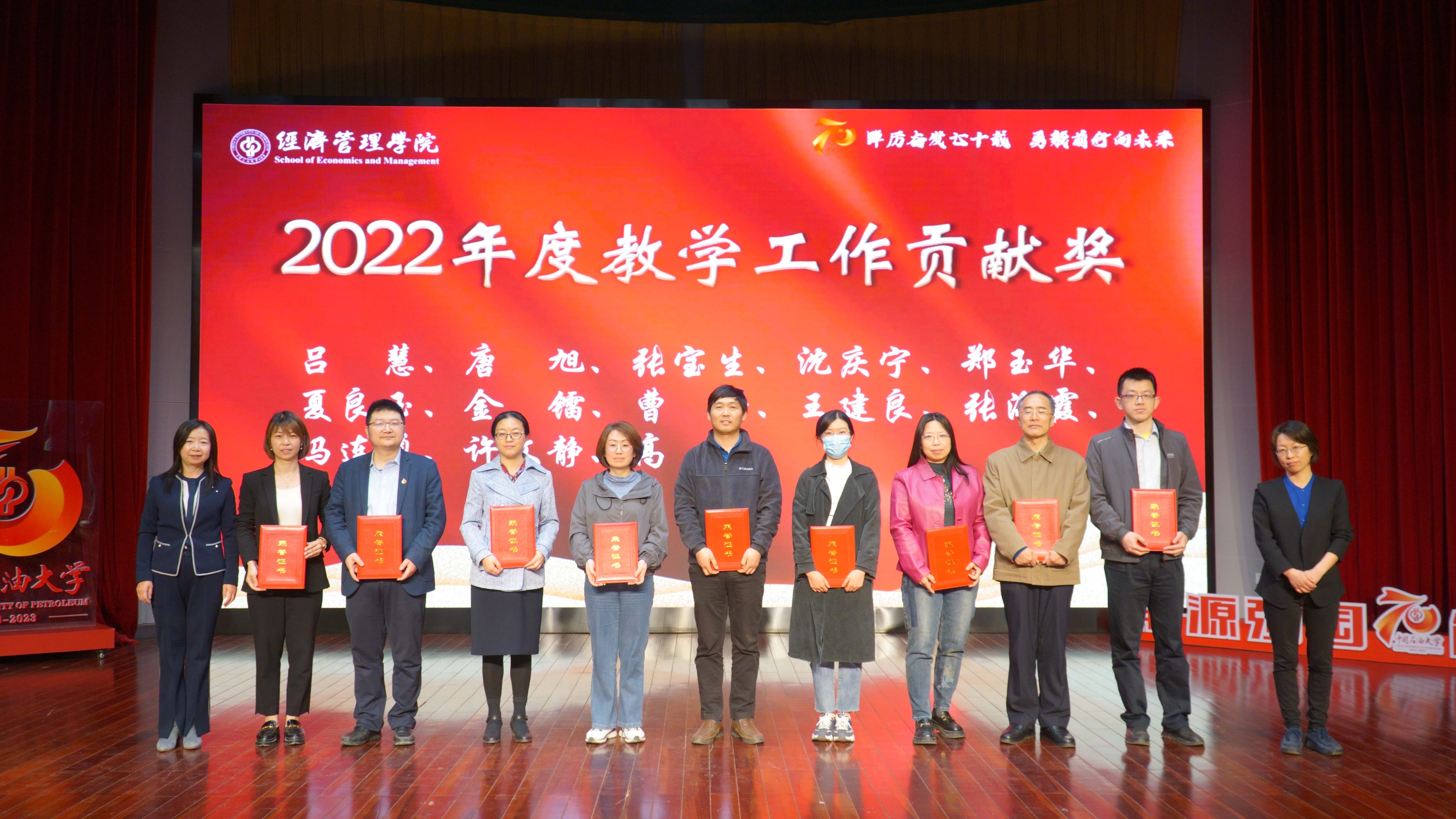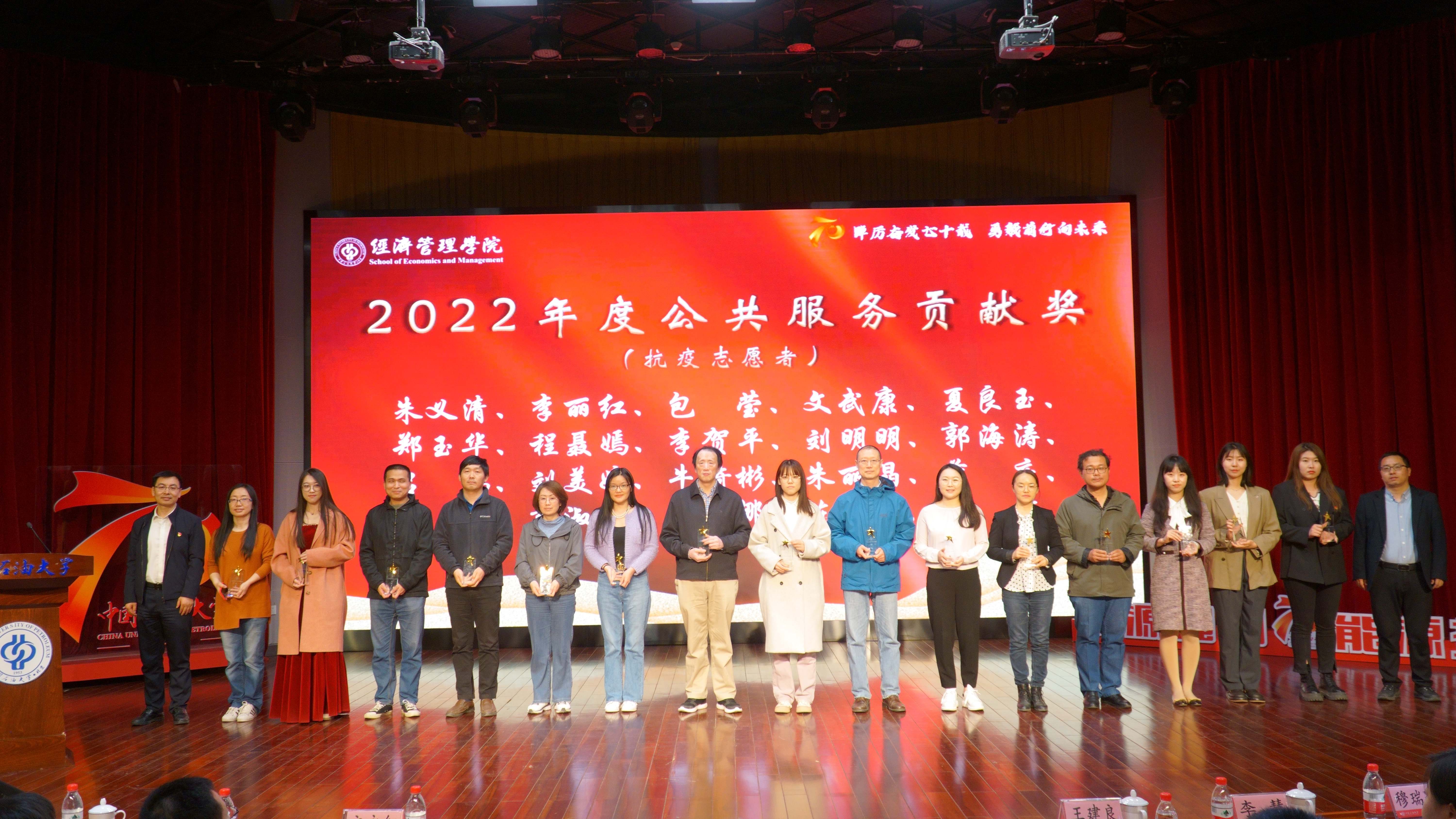 学院对2022年在党建、科研、人才、教学、学生、公共服务方面做出贡献的教职工进行表彰并颁发了奖杯和证书,激励全院教职工以先进为榜样,积极进取,勇担重任,开拓创新。对在校园文化建设、班团建设、创新创业、自立自强、学业、志愿服务等方面表现优秀的学生进行表彰并颁发证书,勉励全院学生学习先进典范,勤奋学习,不断充实自己,迎接挑战。