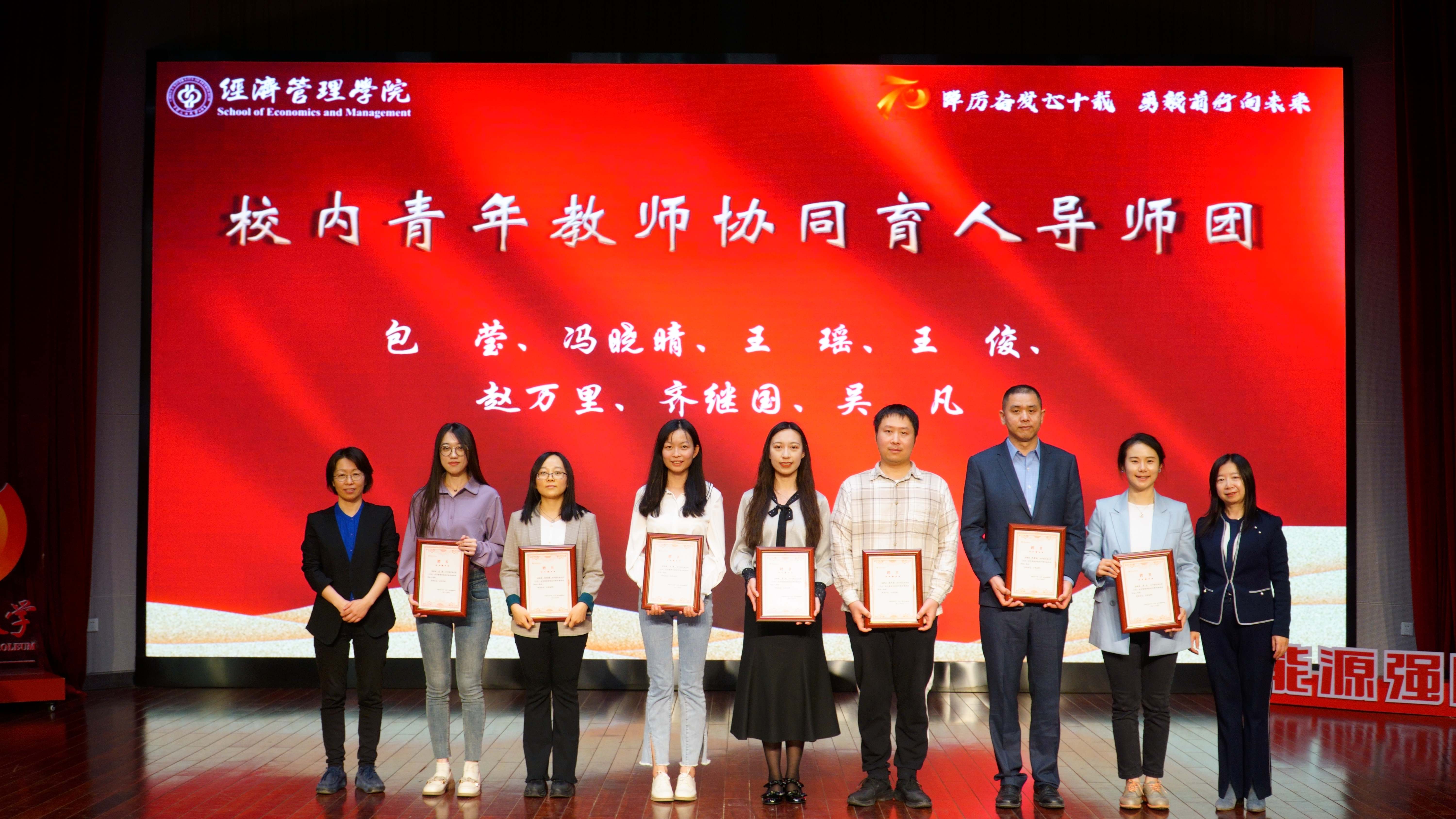 大会开展了经济管理学院协同育人导师团聘任仪式。分别为“校内管理与服务协同育人导师团”、“校内青年教师协同育人导师团”、“校友协同育人导师团”受聘教师颁发聘书。