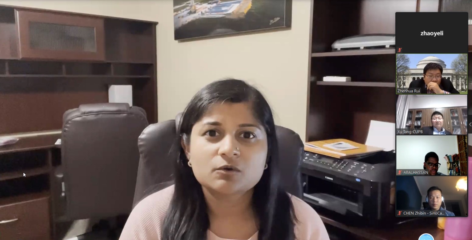 本次会议由碳中和未来技术学院副院长、石油工程学院教授芮振华主持。会议强调多元化和包容性,参会的分别是来自国内外工业界、学术界的专家、学者以及利益相关方。首先,由美国Endeavor Energy Resources公司的高级油藏工程师Yogashri Pradhan、 美国圣弗朗西斯大学石油工程系教授Qin He、瑞典乌普萨拉大学自然资源与可持续发展研究中心主任Mikael Höök教授、中国石油大学(北京)留学生ABAL-HASSAN代表国际视野发表观点;由北京中创碳投科技有限公司投融资与国际项目总监陈志斌、中国石油大学(北京)经济管理学院院长唐旭教授、以及校研究生代表朱丽颖从区域角度发表观点。