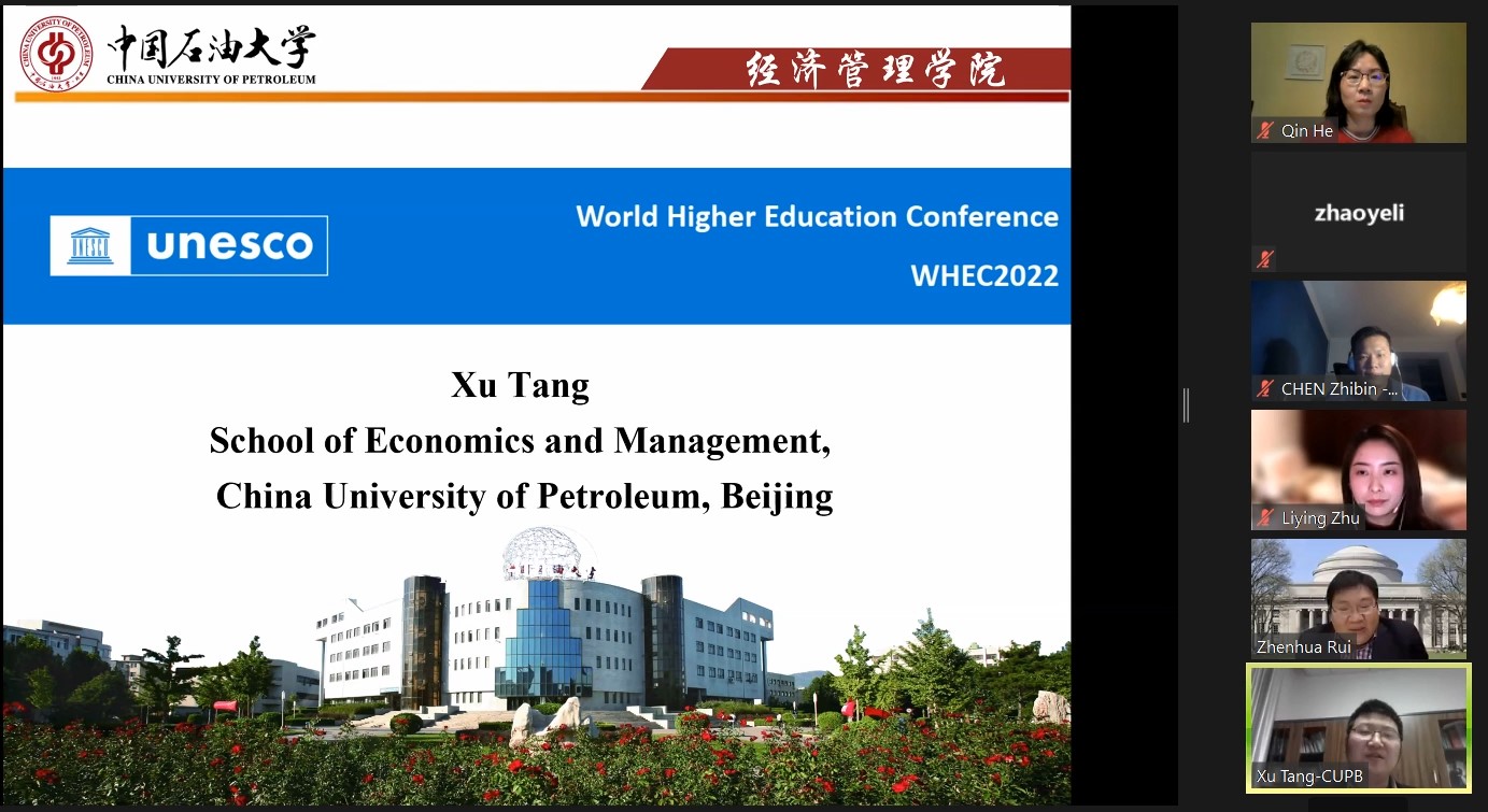 2021年12月9日,由中国石油大学(北京)主办、经济管理学院和碳中和未来技术学院承办的“高等教育及可持续发展目标”政策对话与咨询会议通过线上的形式举行。本次会议作为2022年第三届联合国教科文组织高等教育大会(WHEC 2022)的前置倡议活动,围绕“为可持续的未来重塑高等教育”的主题,邀请多元背景的嘉宾通过多方视角展开讨论,旨在为“联合国高等教育2030发展目标”提供智力贡献和知识产出、献计献策。