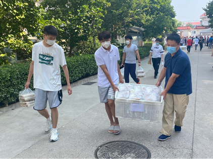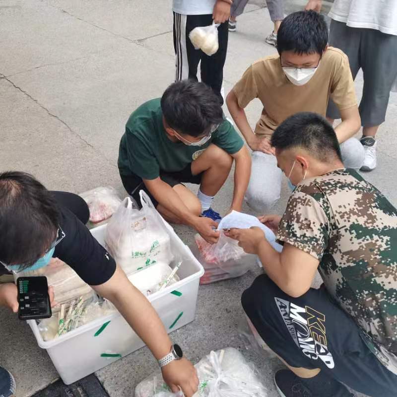 在保障学院日常保障教学科研等工作平稳运行的同时,以党支部为单位,组织成立四个教工返校保供志愿服务队,带领学生志愿者团队共同战“疫”。共有26名党员、民主党派以及群众身份教职工与学生志愿者共同为三个片区413名静默学生开展保供工作。师生们积极参与送餐各项环节,匹配名单、搬运餐盒、分配到各宿舍,并在送餐过程中了解学生思想动态,保证学生身心健康,共同筑牢疫情防控铜墙铁壁。学生们见到老师们送餐也都感动不已,纷纷表示感受到了家的温暖,一定坚定信心,严格遵守学校好疫情防控要求,不辜负学校和老师的期望。