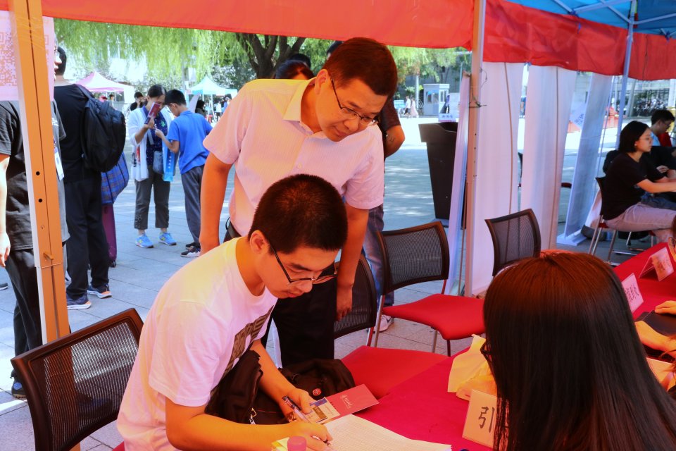 24日下午,杨棉之来到青年园公寓旁南广场迎新报到处看望报到新生,了解迎新流程和新生报到情况。