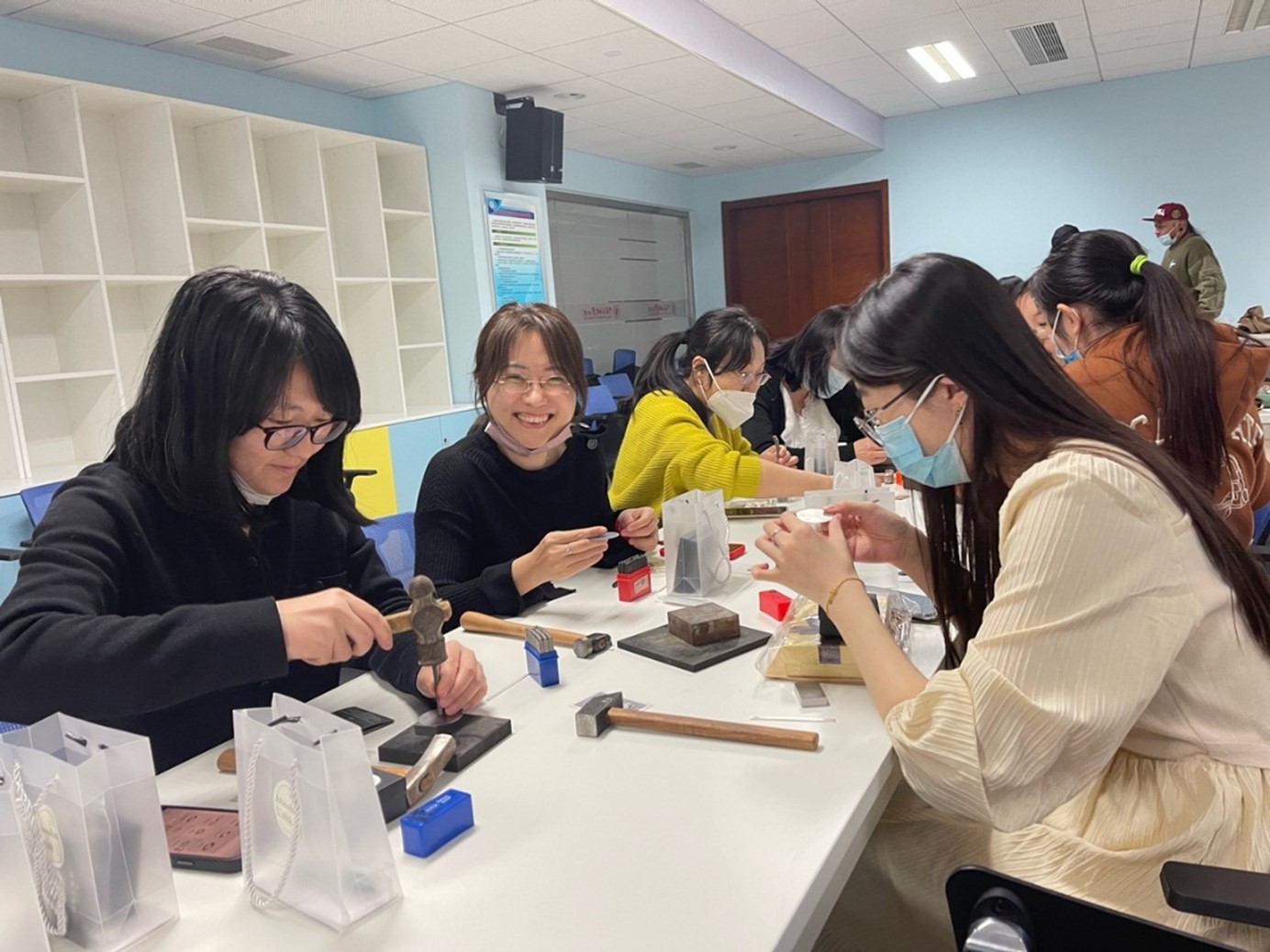 为丰富教职工文化生活,庆祝国际三八妇女节,3月7日下午,经济管理学院工会举办了一场形式新颖,充满创意的“庆女生节DIY创意活动”。在专业老师的指导下,老师们或自主选择小皮具材料包,制作卡包、眼镜盒等小皮具,或选择银饰材料包,制作银戒指或者银吊坠等创意产品。