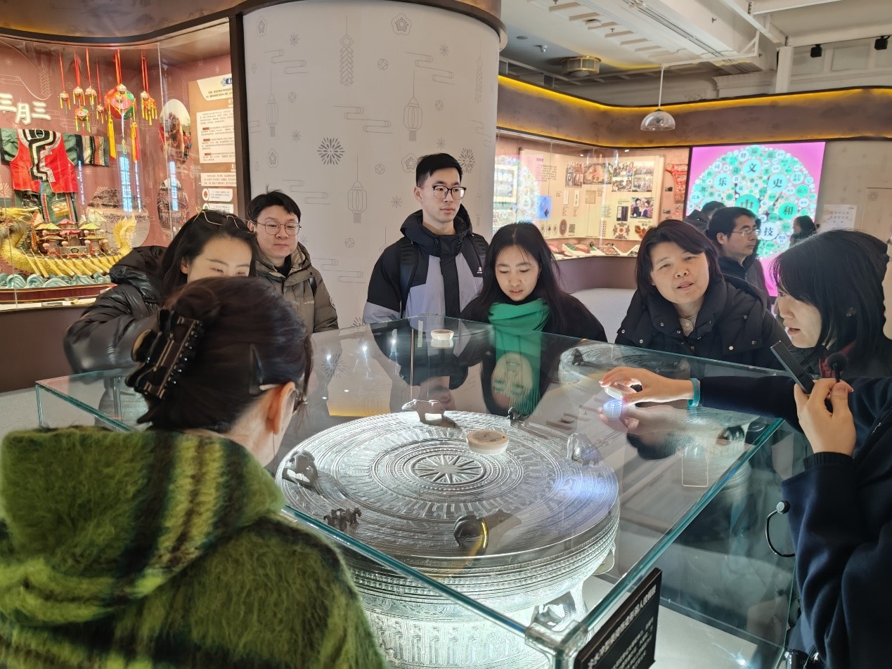 参观结束后,师生们围绕展览内容展开了热烈的交流与讨论。支部书记夏良玉老师从课程思政的角度阐述了共同价值观对群体凝聚力的重要作用。他提出,在授课内容涉及传统文化时,应从文化认同与融合的高度出发,以价值观认同为切入点,传递民族融合思想。殷建平老师不仅提到各民族交流与学习的历史,还分享了自己在指导少数民族学生过程中践行融合理念的经验,表示通过加强与少数民族学生的沟通和支持,可以进一步促进民族团结与文化认同。方红老师认为,这些文物体现了各民族在长期交流融合中形成的共同文化基因,各民族虽然有过冲突和矛盾,但更多的是相互学习、相互尊重、相互帮助。闫宽老师补充了科研视角的融合与创新,他认为科研工作需要融合来自不同国家或不同学科的多样化观点,集百家之所长,从而提升创新能力。