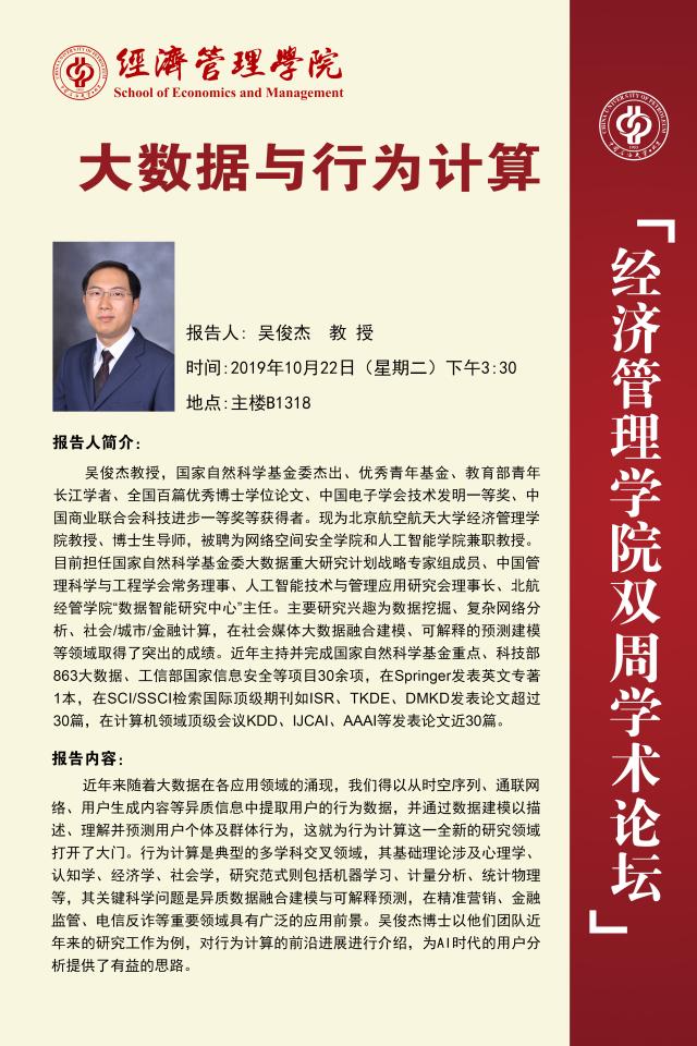 经济管理学院双周学术论坛讲座预告