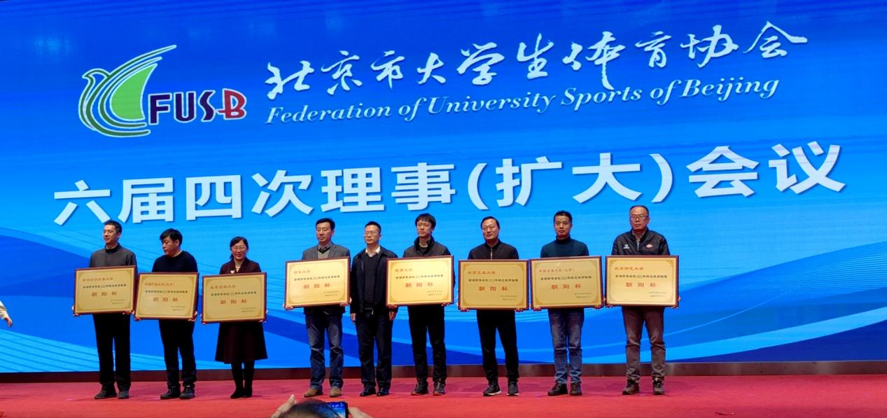3月11日,北京市大学生体育协会第六届四次理事(扩大)会议顺利召开,我校体育与人文艺术学院相关代表参加了此次会议。本次会议总结了过去一年北京市大学生体育活动的整体工作,表彰了阳光体育联赛优胜学校,我校包揽了2022年首都高等学校阳光体育“朝阳杯”和“阳光杯”全部荣誉。为促进首都高校体育工作,北京市教委设立了“朝阳杯”与“阳光杯”两个奖项。我校在首都高等学校2022年“朝阳杯”阳光体育联赛中积分得792分,获得甲组第六名。在“阳光杯“中积分得1279分,获得第九名。近年来,我校落实立德树人根本任务,将体育课堂教学与校内外群体竞赛相结合,积极推动各项大学生体育赛事,构建校园群体竞赛新体系,促进课程、社团、代表队竞赛与“阳光体育”锻炼等课内外一体贯通,已经取得了一系列的成绩,期待未来可以创造更多的成绩与突破。