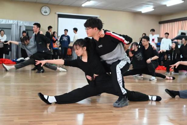 这个庞大的队伍来自不同的学院不同的专业,大家利用中午休息的时间争分夺秒的训练,有的演员还带病坚持。两个月的时间一转眼就过去了,排练接近尾声。后面几乎每天都会有大联排,每次都会有一些小问题出现,甚至到演出之前,我们的舞蹈动作还在微调。目标只有一个,给所有观众呈现出最好、最棒的舞台。演出当天大家的精神面貌都非常好,每个人为自己的努力都交上了一份最满意的答卷。训练的“痛苦”得到倍计的汇报,我们用自己的成果证明了所有演员和指导老师无悔的付出。
