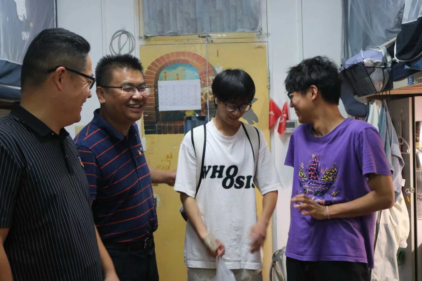 学业导师和班主任逐一走访所负责的新生宿舍,询问同学们军训期间的感受与第一周课程学习上的进展,并鼓励他们不仅要延续军训中建立的良好习惯,更要在日常生活中培养学习兴趣,实现综合素质提升。老师们还特别关注学生的身心状态与生活情况,倾听同学们遇到的困难与问题并进行解答。