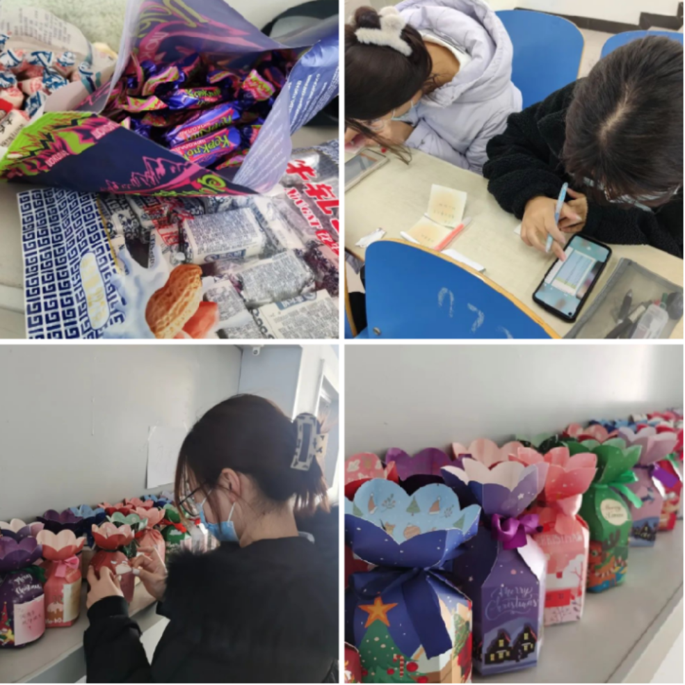 多份礼物装盒,以同学姓名开头的专属便签祝福语: 于大衷——踵事增华;周鸣阳——一鸣惊人!