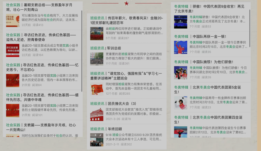 推送117篇,累计浏览量超30000次,推出冬奥特辑18篇,校级公众号报道5次,院级公众号报道13次,公众号、视频号、微博等各平台运营。