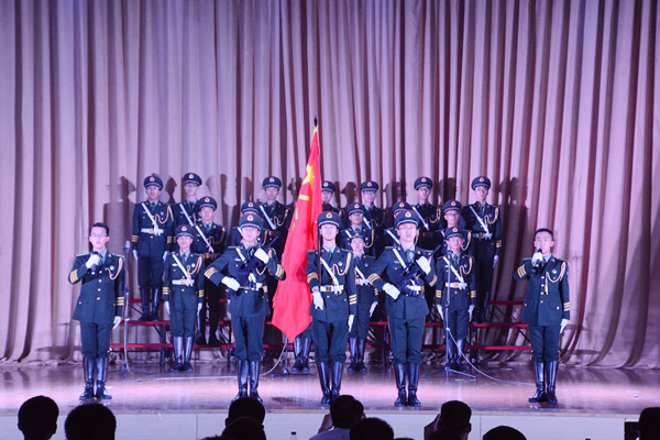 庆典在大学生艺术团管弦乐团《我为祖国献石油》的演奏中拉开帷幕,舞蹈《花开时节》、话剧《向国旗敬礼》、合唱《当那一天来临》、朗诵《我的队伍我的家》等精彩节目展现出国旗仪仗队成员热情高昂的精神风貌和不畏艰苦的高尚品格。