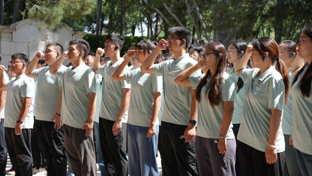 8月14日,青年怀着崇敬之心,步入庄严肃穆的中国人民抗日战争纪念馆。在讲解员的引导下,同学们缓缓穿行于记录烽火岁月的展厅。一张张珍贵的历史图片、一件件承载民族记忆的文物、一段段感人至深的英雄事迹,都在无声诉说着中华民族那段不屈抗争的壮丽史诗。参观结束后,同学们在展馆门前整齐列队,精神抖擞地共同唱响《歌唱祖国》,嘹亮而深情的旋律在纪念馆前回荡,歌声穿越时空、连接历史与当下,振奋着每一位爱国青年的精神。