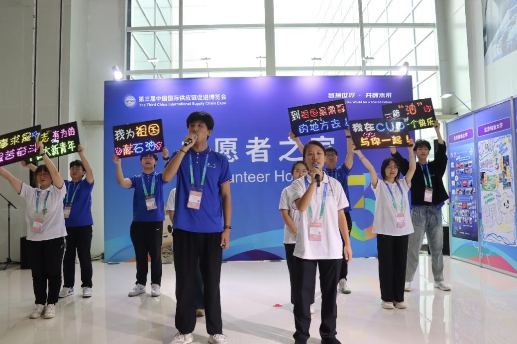 第三届中国国际供应链促进博览会(以下简称“链博会”)于7月16日至20日在北京中国国际展览中心(顺义馆)举办。在共青团北京市委员会、北京市志愿服务联合会的协调安排下,中石大选派41名志愿者和1名带队老师参与链博会服务保障工作,累计志愿服务时长达2215小时。