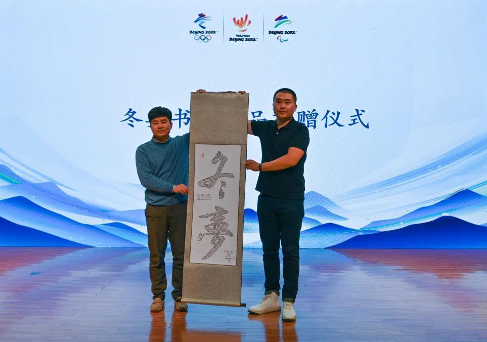 中国诗书画研究会会员、中国书画家联谊会会员金先赤为学校赠送用全体冬奥志愿者姓名创作的作品“冬梦”