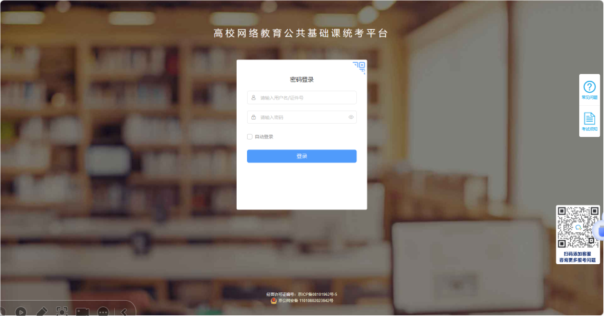 登录报名网站https://ggjcktk.webtrn.cn,考生输入用户和密码登录系统。考生登录账号为身份证号,默认初始密码为身份证号后六位。