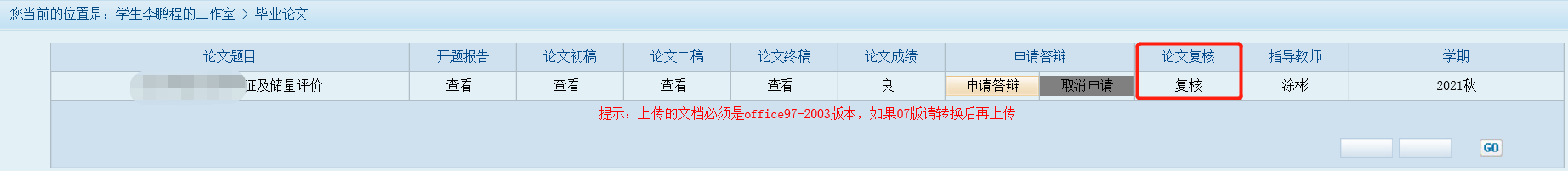 3.论文成绩不及格或两次论文选题后未完成写作的同学,在平台论文操作模块点击“复核”按钮提交终稿稿件并查重(查重率不高于20%)。具体要求以学院发布的正式复核通知为准。