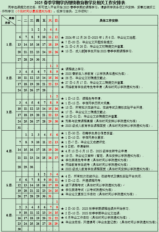 2024级成人教育学生本学期课程已经全部选定,请登录学生工作室查看本学期在学课程及考核方式,在规定时间内完成各项学习任务;之前学期未完成的在学课程请继续按要求完成学习任务。
