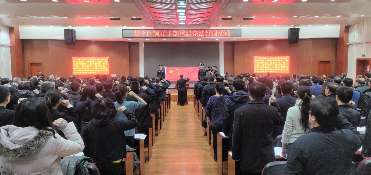 宪法宣誓仪式由昌平区副区长刘长永领誓,全体人员面向国旗重温宪法誓词。