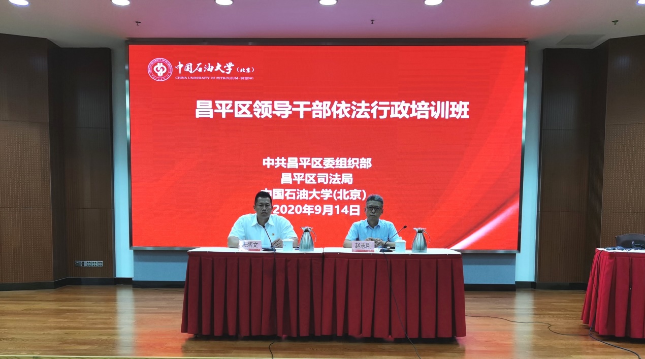 由昌平区委组织部、区司法局主办,中国石油大学(北京)具体承办的昌平区2020年领导干部依法行政培训班于9月14日在翠宫招待所隆重开班。昌平区副区长、区委政法委副书记朱炳文出席开班并作动员讲话,昌平区司法局党委书记、局长赵志刚主持开班动员会。中国石油大学(北京)网络与继续教育学院副院长刘玉平到场接待。