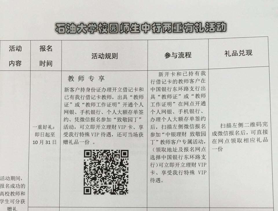 中国银行关于石油大学教职工有礼活动