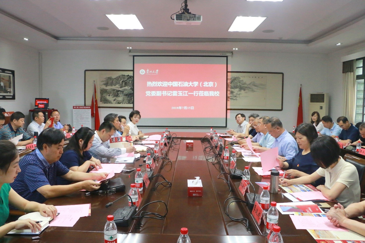 培训期间,雷玉江带队到贵州大学进行交流访问。交流座谈会上,雷玉江和贵州大学纪委书记汪海波分别介绍了两校党建和思想政治工作情况。雷玉江表示,贵州大学在党建和思想政治工作方面取得的经验与成绩具有很好的借鉴意义,希望两校相关部门互通有无、增进交流,努力形成交流合作的长效机制。会后,学员们听取了贵州大学党建专家、马克思主义学院院长张国安教授作的题为“红色记忆,遵义会议——纪念长征胜利82周年”的专题辅导报告。