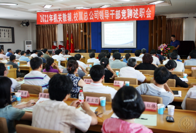 根据《中共中国石油大学(北京)委员会关于新一轮二级单位领导干部选拔任用工作的实施意见》的安排,6月8日,学校在第四会议室召开了2011年机关教辅、校属总公司领导干部竞聘述职会。校党委委员,纪委委员,全体二级干部,教代会主席团成员,校学术委员会主任、副主任,民主党派负责人共120余人参加了会议。会议由党委组织部部长梁喜书主持。