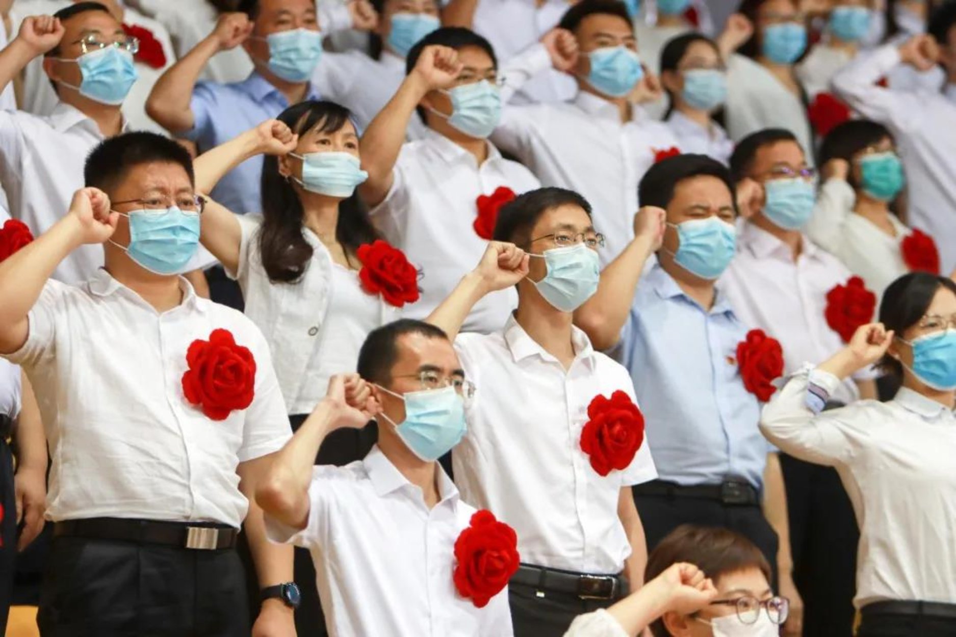 大会在全体参会人员合唱《没有共产党就没有新中国》《歌唱祖国》中结束。